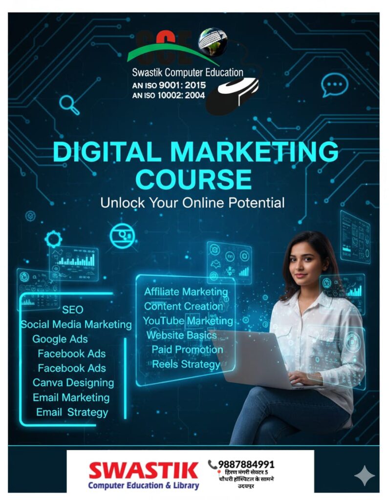 Swastik Computer Education proudly offers the Rajasthan State Certificate in Digital Marketing (RSCDM) — a professional, government-recognized program designed to build strong digital marketing skills for students, job seekers, freelancers and business owners.